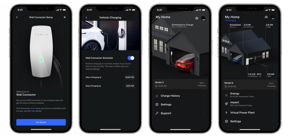 Najrýchlejšie nabíjanie bez potreby nákladných elektrických úprav, ktoré by mohli byť nutné v prípade, že má domácnosť obmedzený príkon.Funguje cez aplikaciu Tesla.