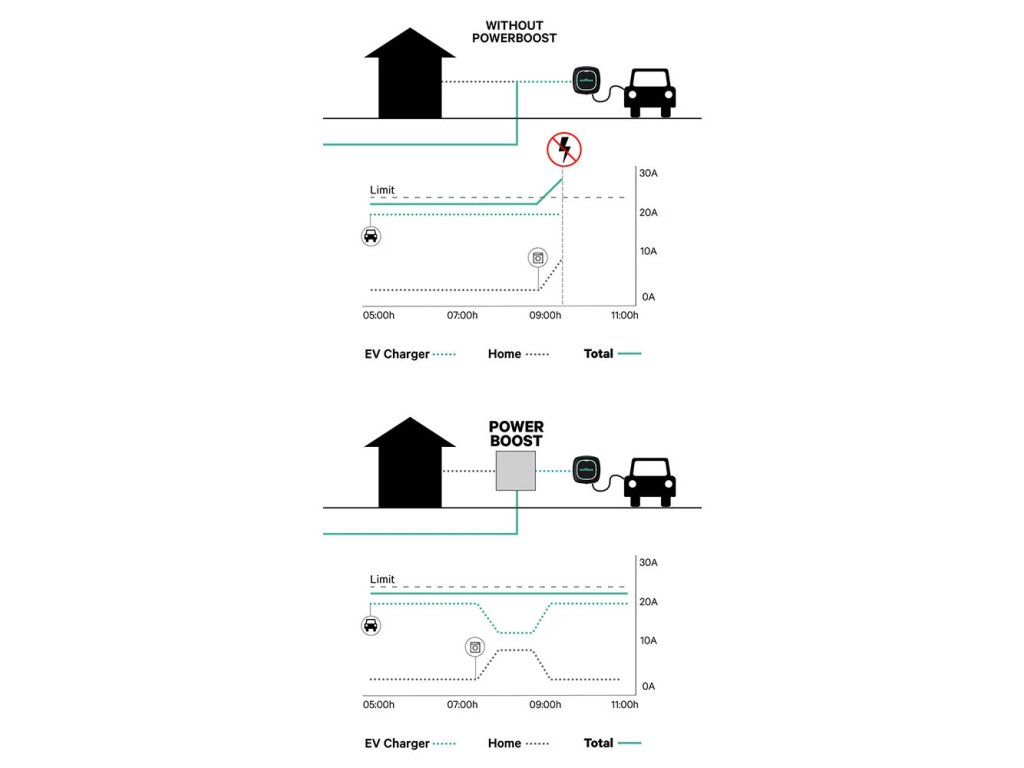 Najprv nainštalovať nabíjačku, potom elektromer Power Boost.